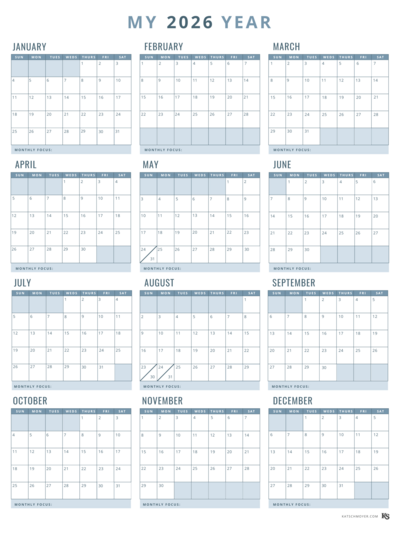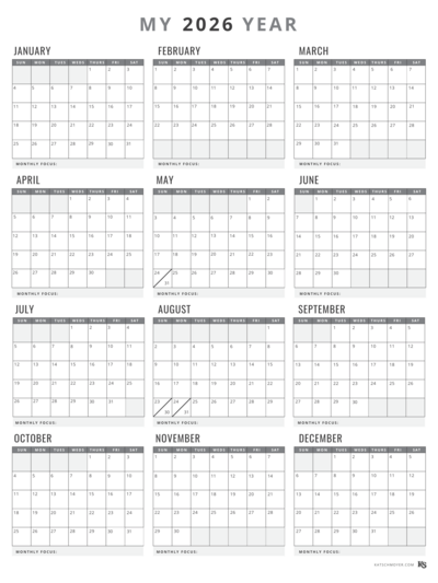 This calendar includes 2 sizes (poster size & letter size) and 4 colors (pink, blue, black & multi). Pick your fave & get started!
